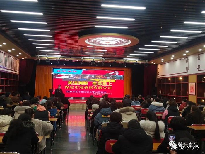 開(kāi)工在即,為了增強員工消防安全意識,提高員工檢查、消除隱患的能力、撲滅初期火災的能力以及火場(chǎng)逃生和引導疏散的能力,保定馨冠食品有限公司、保定市冠香居食品有限公司于2021年2月19日在公司文化館會(huì )議大廳召開(kāi)“2021年消防安全培訓大會(huì )”。