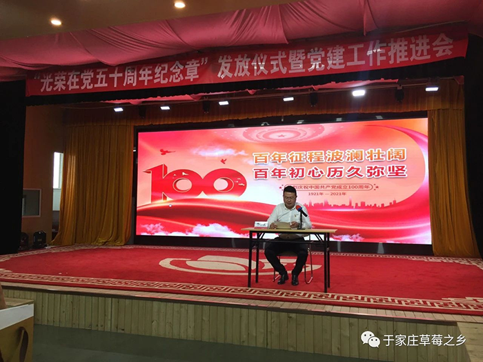 薪火相傳守初心,接續奮斗新征程。為慶祝中國共產(chǎn)黨成立100周年,推進(jìn)黨史學(xué)習教育走深走實(shí),進(jìn)一步增強廣大黨員的榮譽(yù)感、歸屬感和使命感,激發(fā)廣大黨員愛(ài)崗敬業(yè)、奮發(fā)有為的工作熱情,6月29日上午,于家莊鎮“光榮在黨50年紀念章”發(fā)放儀式暨黨建工作推進(jìn)會(huì )于保定市冠香居食品有限公司3樓“馨冠文化藝術(shù)館”隆重舉行。