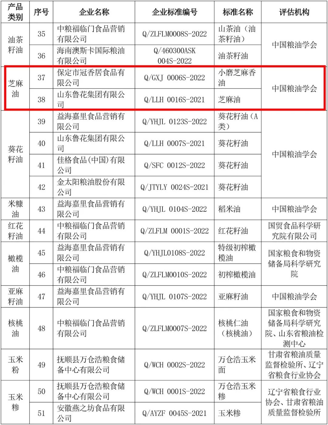 恭喜冠香居公司獲得2022年糧油產(chǎn)品企業(yè)標準領(lǐng)跑者!