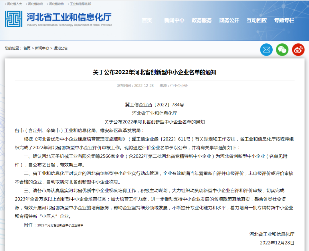 恭喜冠香居公司榮獲2022年河北省創(chuàng )新型中小企業(yè)!