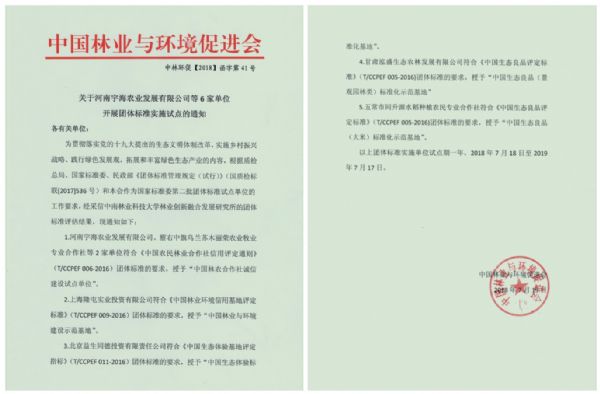 泓盛農(nóng)林公司被授予“中國生態(tài)良品(景觀園林類)標(biāo)準(zhǔn)化示范基地”稱號