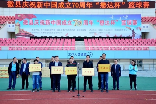 4月22日下午,徽縣慶祝新中國成立70周年“懋達杯”籃球賽在體育中心圓滿閉幕,縣人大副主任王國珍等縣級領導,文體局、教育局及公司負責人出席了閉幕式,并為獲獎隊伍頒獎。