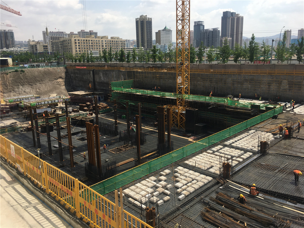 蘭州聯(lián)想科技城項目A塔待澆筑筏板實況圖。