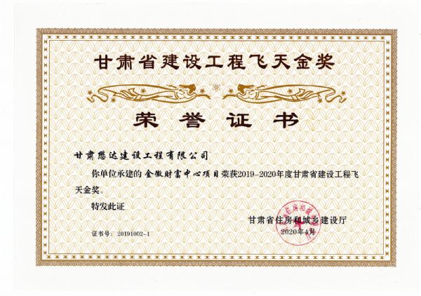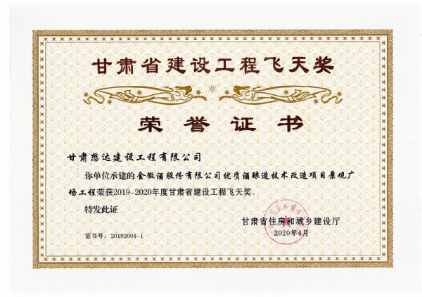 近日,甘肅省住房和城鄉(xiāng)建設(shè)廳關(guān)于2019-2020年度(第一批)甘肅省建設(shè)工程飛天金獎和飛天獎入選名單公示已經(jīng)結(jié)束,公司共有兩個項目榮獲甘肅省建設(shè)工程飛天獎。其中,金徽財富中心項目榮獲飛天金獎,金徽酒股份有限公司優(yōu)質(zhì)酒釀造技術(shù)改造項目景觀廣場工程榮獲飛天獎。據(jù)悉,“飛天金獎”是甘肅省建設(shè)工程最高質(zhì)量獎項。