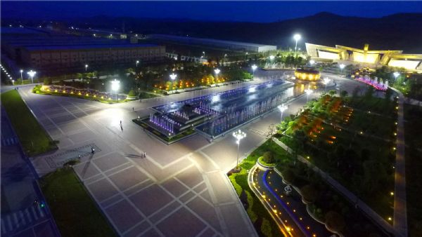 榮獲甘肅省建設(shè)工程飛天獎的金徽酒股份有限公司優(yōu)質(zhì)酒釀造技術(shù)改造項目景觀廣場全景圖。