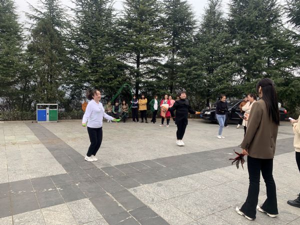 隨后,女職工們在山頂廣場組織了跳繩、踢毽子等自由活動,在歡聲笑語中度過了愉快的時光。