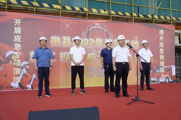 為應(yīng)對(duì)建筑施工地現(xiàn)場(chǎng)突發(fā)安全事故,進(jìn)一步提高公司處理建筑工地安全生產(chǎn)事故的能力,2022年6月30日由徽縣住房和城鄉(xiāng)建設(shè)局主辦,甘肅懋達(dá)建設(shè)工程有限公司、甘肅十建建設(shè)工程有限公司承辦的“徽縣2022年建筑工地施工現(xiàn)場(chǎng)應(yīng)急預(yù)案演練”活動(dòng)在徽縣膠州中學(xué)項(xiàng)目一期一標(biāo)段舉行?h住建局李亞軍副局長(zhǎng)、縣防汛抗旱指揮隊(duì)王亞輝隊(duì)長(zhǎng)、質(zhì)安站荔秀平站長(zhǎng)及懋達(dá)實(shí)業(yè)集團(tuán)副總經(jīng)理尹向宏、總工程師朱金平等相關(guān)領(lǐng)導(dǎo)出席并參加了本次演練活動(dòng)。