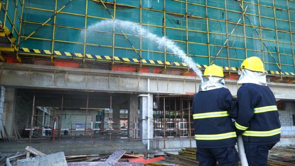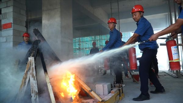 模擬建筑工地發(fā)生火災(zāi)和發(fā)生工人觸電事故,施工現(xiàn)場(chǎng)負(fù)責(zé)人馬上報(bào)警,通訊組撥打“119”電話,說(shuō)明地點(diǎn),請(qǐng)求消防隊(duì)到達(dá)現(xiàn)場(chǎng)進(jìn)行滅火處置,同時(shí)撥打“120”電話前來(lái)救護(hù)。立即向公司相關(guān)負(fù)責(zé)人匯報(bào),公司負(fù)責(zé)人立即向上級(jí)主管部門(mén)報(bào)告事故發(fā)生情況。滅火組、物資供應(yīng)組、救護(hù)組、疏散組立即行動(dòng)起來(lái),有序開(kāi)展滅火,現(xiàn)場(chǎng)組織自救和人員疏散工作,在自救的同時(shí)縣消防大隊(duì)救援車(chē)輛趕赴現(xiàn)場(chǎng)將火撲滅,縣人民醫(yī)院救護(hù)車(chē)及救援人員也趕赴現(xiàn)場(chǎng),將受傷人員檢查處理后,送縣醫(yī)院急救中心進(jìn)行救治。參演各小組按照指令有序開(kāi)展救援,配合緊密,達(dá)到了“練”為“戰(zhàn)”的目的。