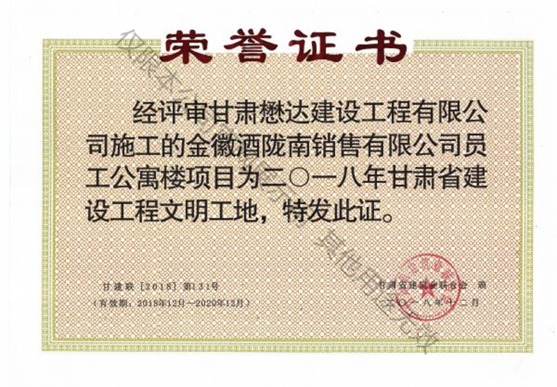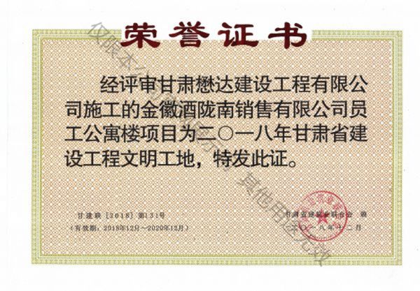 金徽酒隴南銷售有限公司員工公寓樓項目--2018年甘肅省建設(shè)工程文明工地