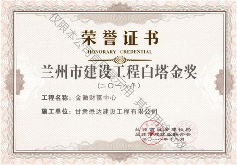 金徽財富中心--2018年蘭州市建設(shè)工程白塔金獎