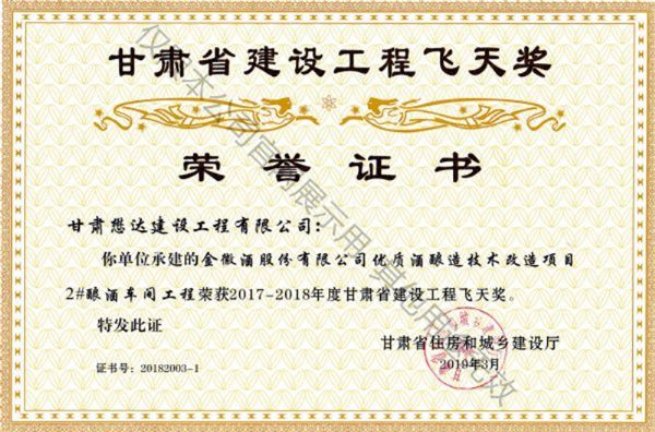 金徽酒技改項目2#釀酒車間工程---甘肅省建設(shè)工程飛天獎