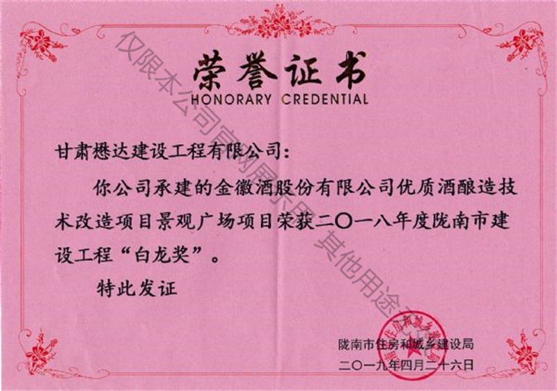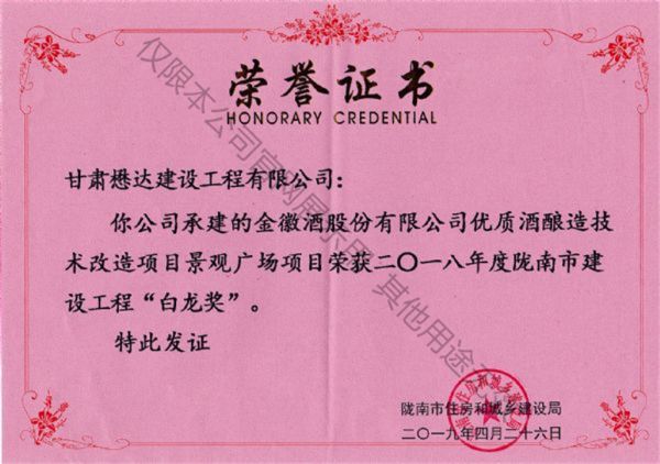 金徽酒技改項目景觀廣場工程---2018年度隴南市建設(shè)工程“白龍獎”