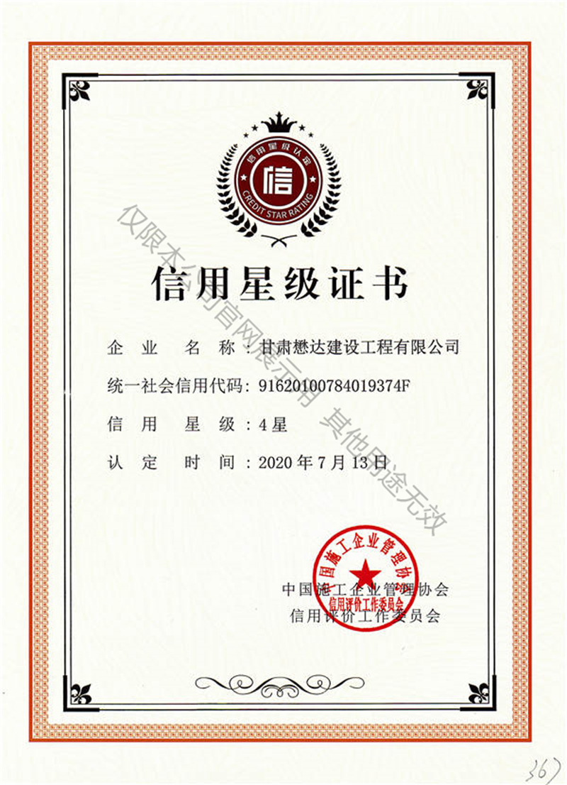 信用星級證書