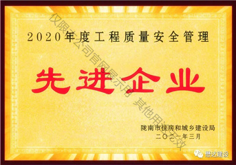 2020年度工程質(zhì)量安全管理先進企業(yè)