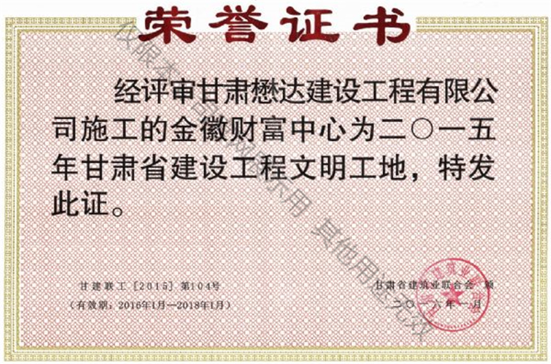 金徽財富中心-2015年省級文明工地