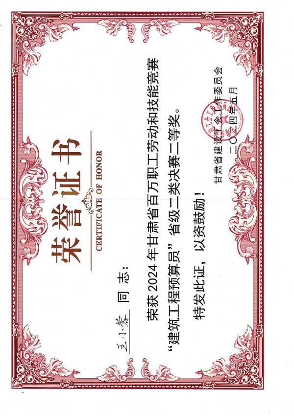 近日,2024年甘肅省百萬職工勞動和技能競賽“建筑工程預算員”省級二類決賽結果揭曉。