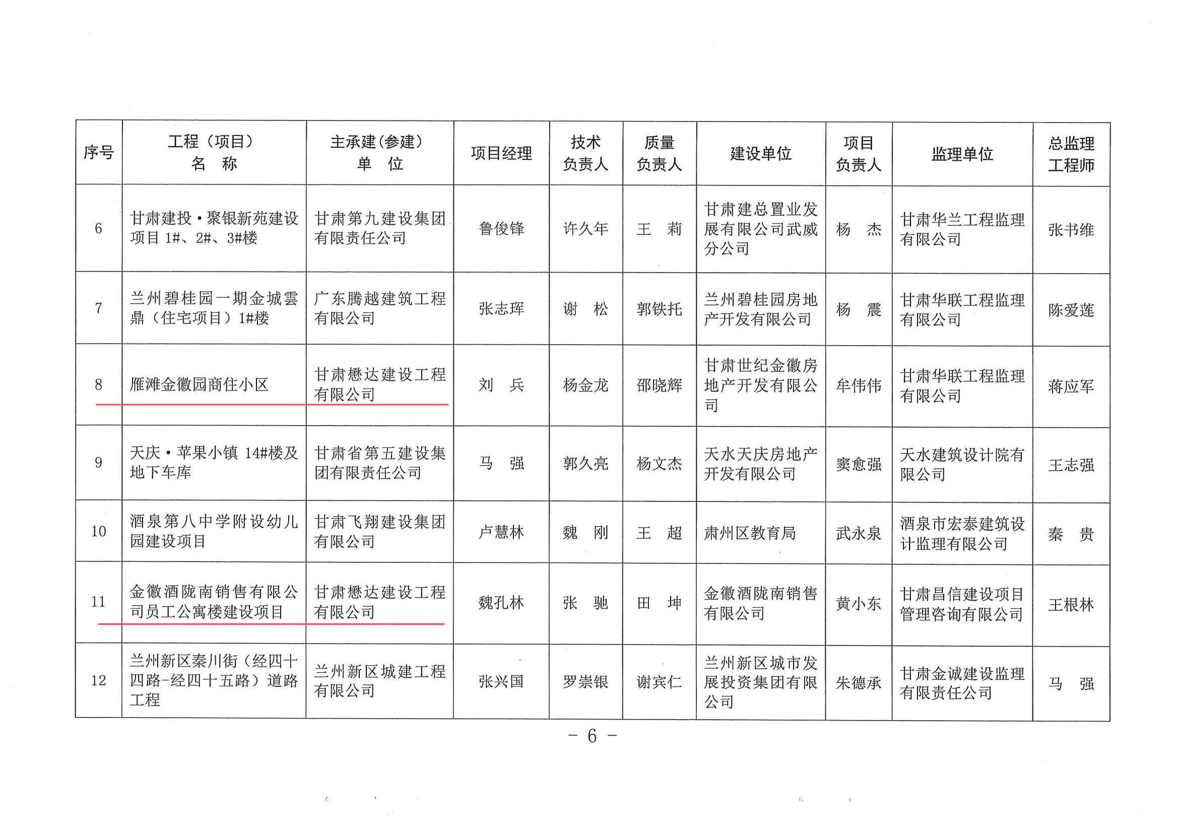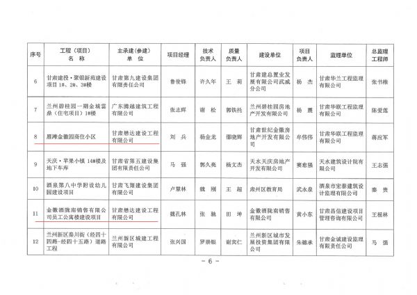 近日,2023年度甘肅省建設工程“飛天獎”入選工程名單揭曉。由甘肅懋達建設工程有限公司承建施工的雁灘金徽園商住小區(qū)和金徽酒隴南銷售有限公司員工公寓樓建設項目榮獲甘肅省建設工程“飛天獎”。